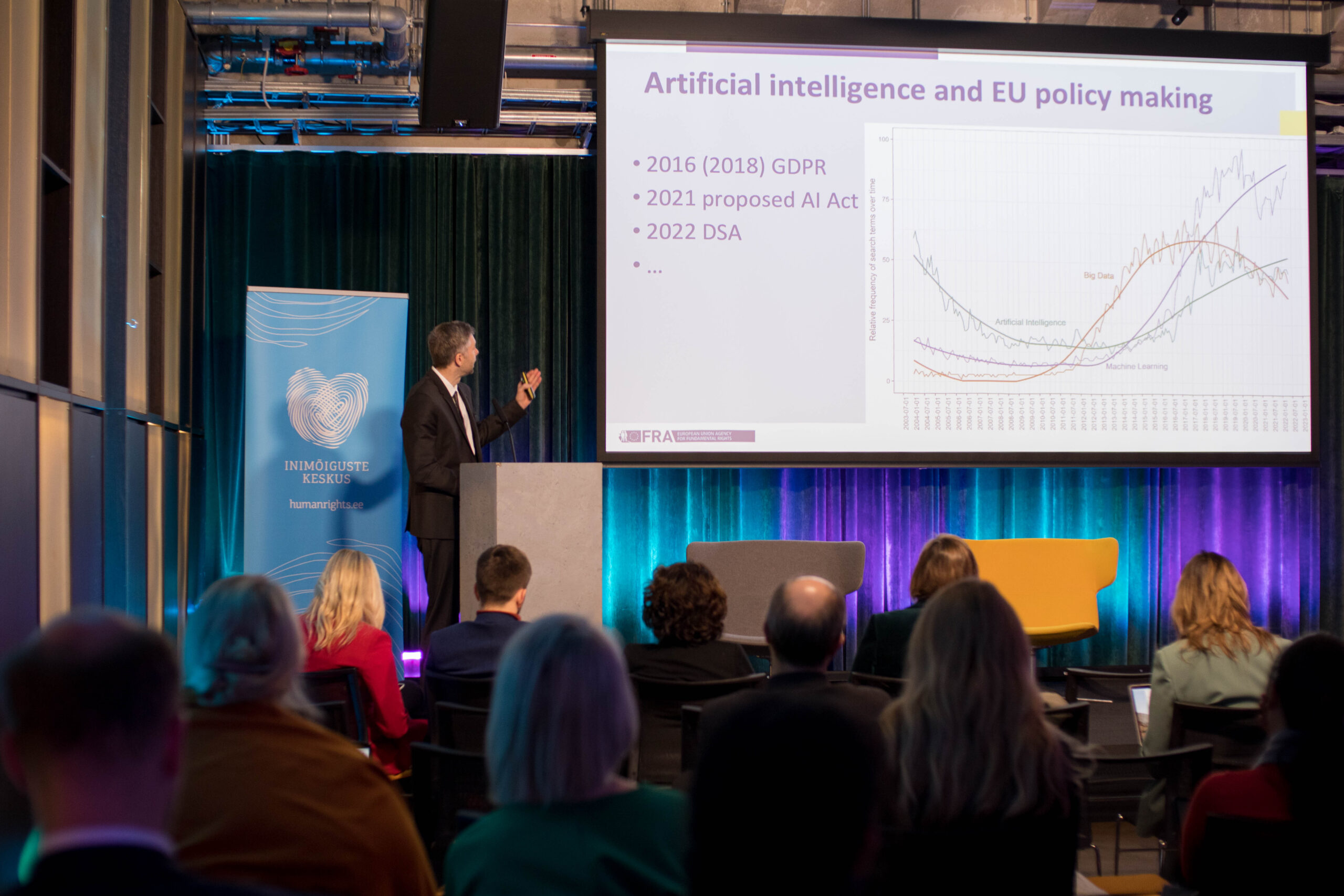 Euroopa Liidu Põhiõiguste Ameti (FRA) andme- ja digitaalsektori projektijuht Dr David Reichel esitles ameti poolt koostatud raportit algoritmide kallutatusest. Sotsiaalmeedia andmete põhjal analüüsiti termineid, mida algoritm kategoriseerib vaenukõne alla. Leiti, et algoritm oli etniliselt kallutatud, eelkõige moslemite ja juutide suhtes. Dr Reichel rõhutas pideva testimise, andmete mitmekesistamise ja kaitsmise vajalikkust, et tagada andmete objektiivsust ja parandada nende kvaliteeti.