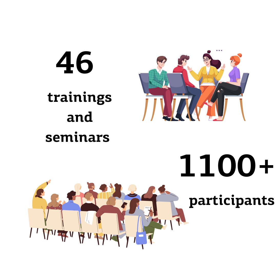 More than 1,000 people participated in our trainings and seminars, primarily on diversity and inclusion. We covered topics such as accessibility, safe work environments, women’s empowerment, and equal treatment. We also organized seminars for lawyers and NGOs on the EU Charter of Fundamental Rights, gender and sexual minorities, and the roots of hate and intolerance.