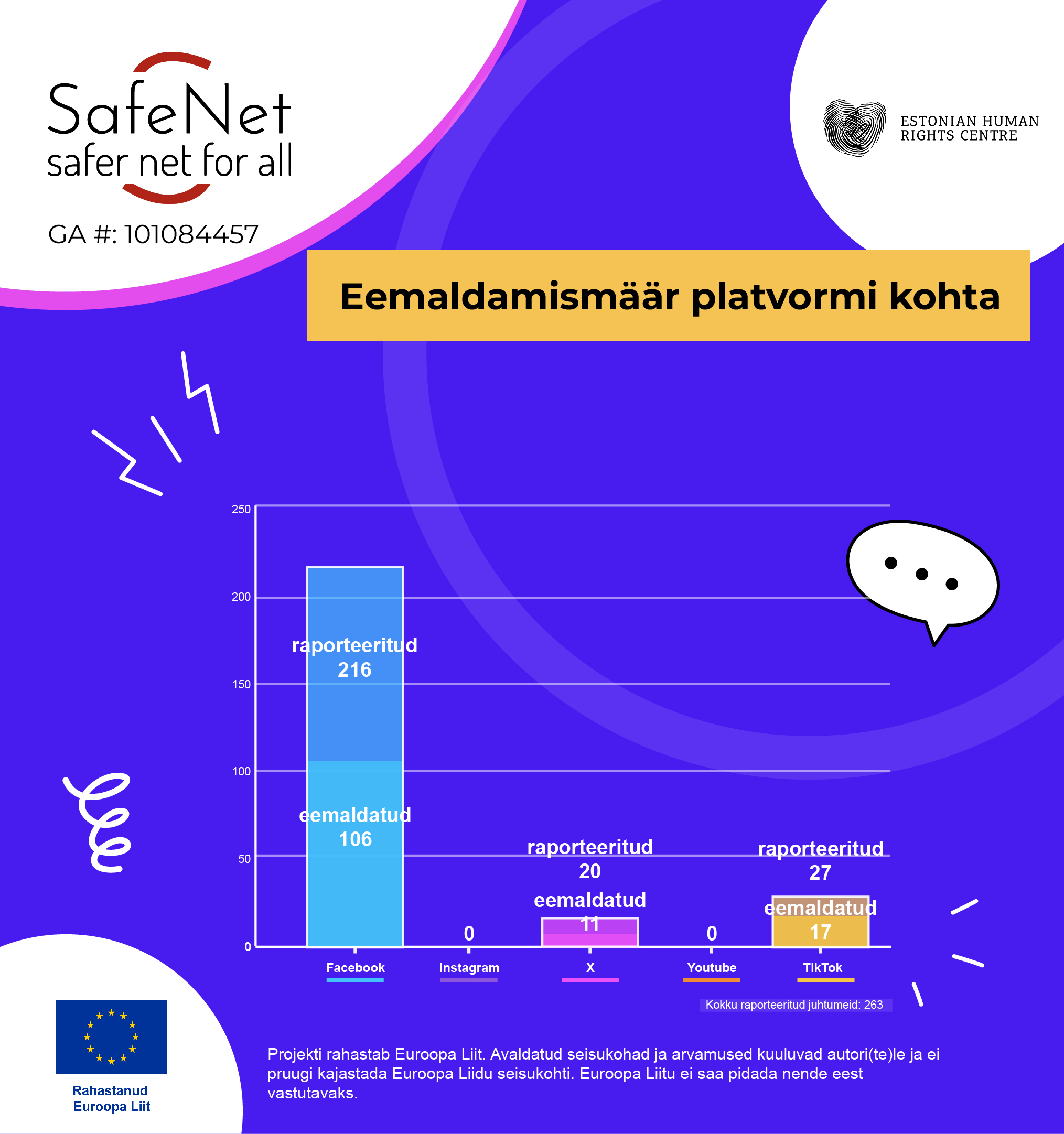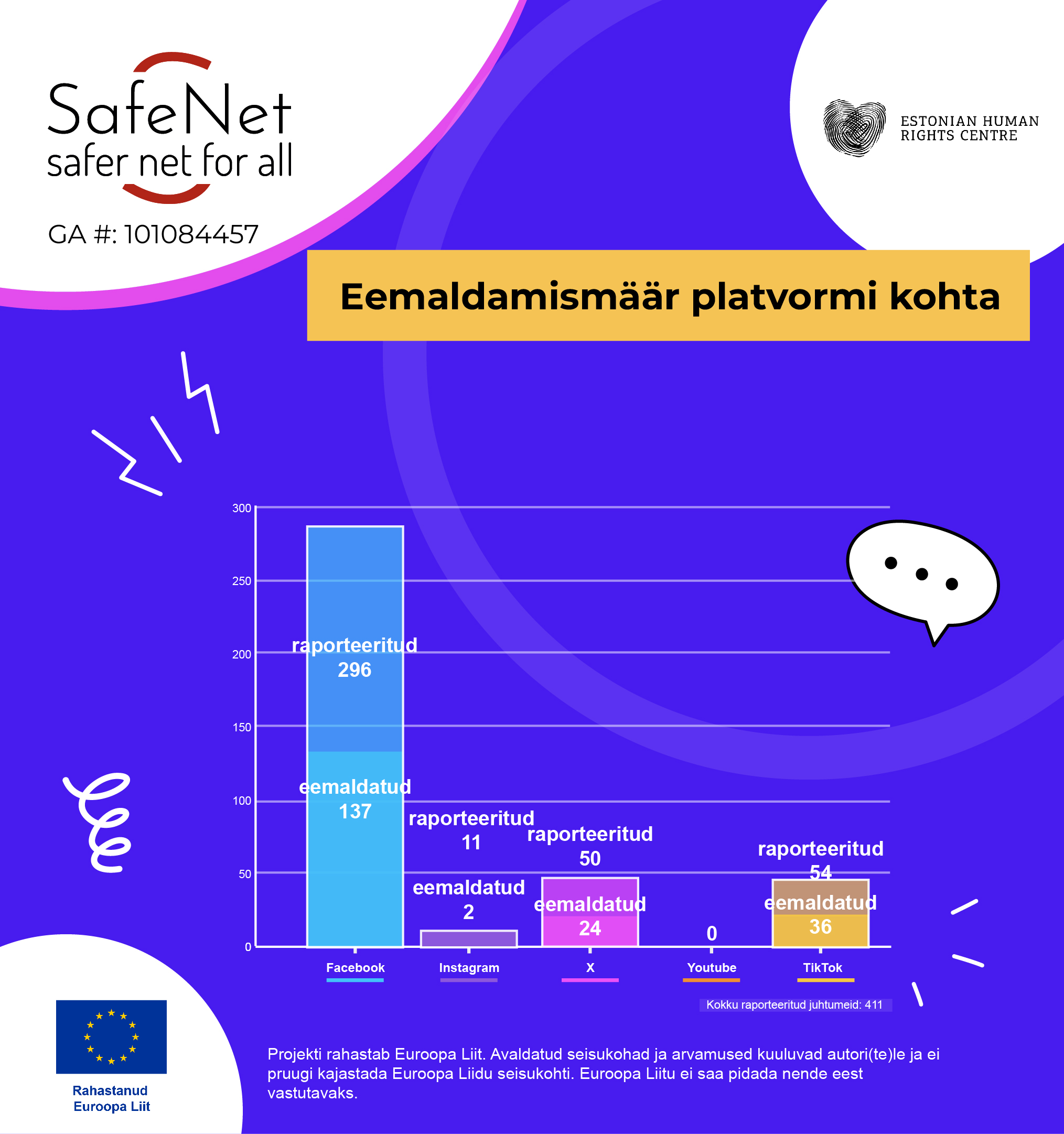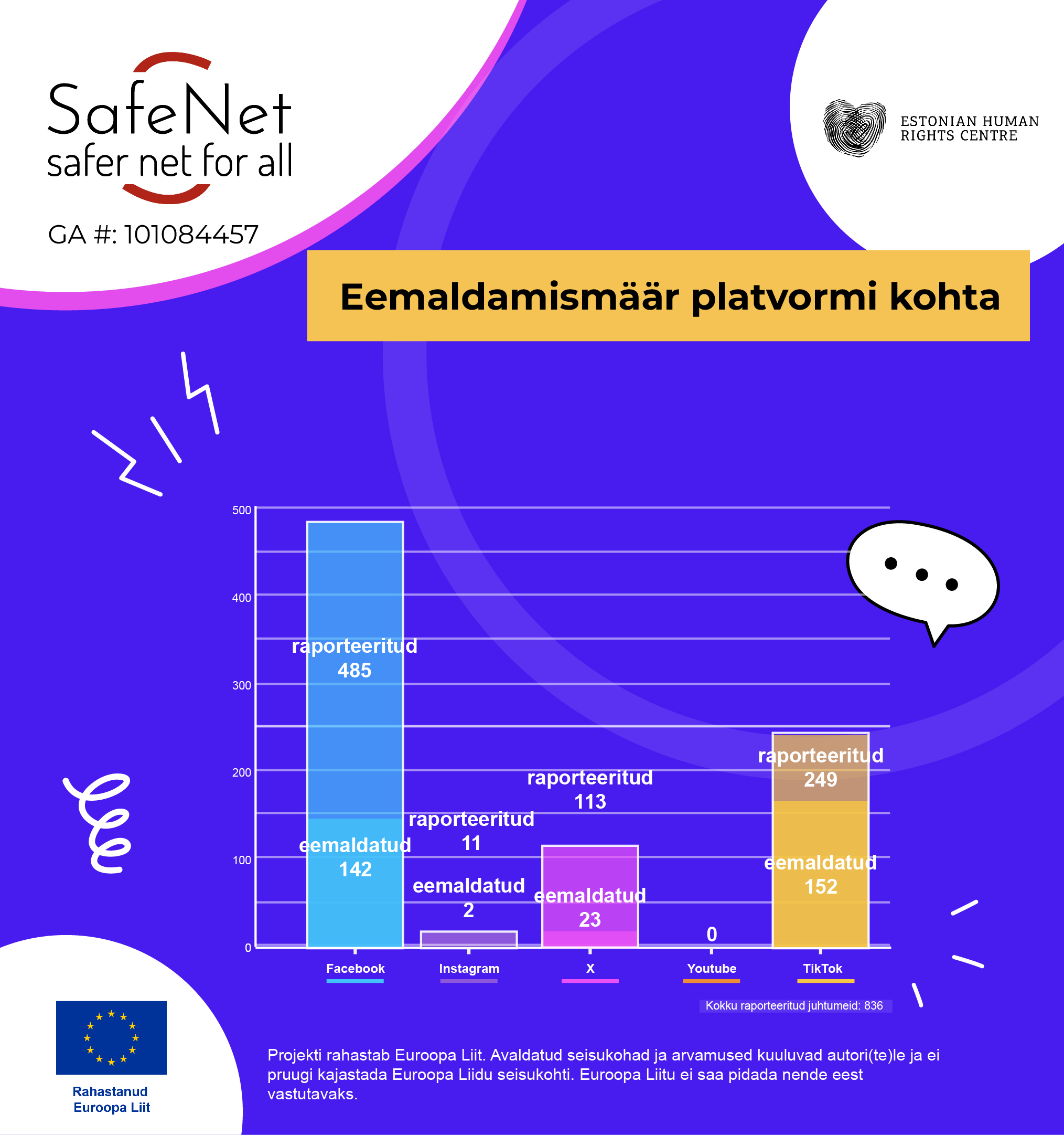 Euroopa vabaühendused on aastaid monitoorinud vaenukõne levikut sotsiaalmeedias ning sotsiaalmeediaplatvormide lähenemist vaenu eemaldamisele. Inimõiguste keskus osaleb partnerina projektis SafeNet, mis jätkab seniseid pingutusi ambitsioonikamalt: suurenenud on osalevate vabaühenduste ring ning kaasatud on pea kõik Euroopa riigid. Projekti juhtpartner on internetis leviva vaenukõne vastu võitlev rahvusvaheline võrgustik INACH, kaasatud on 21 vabaühendust üle Euroopa.